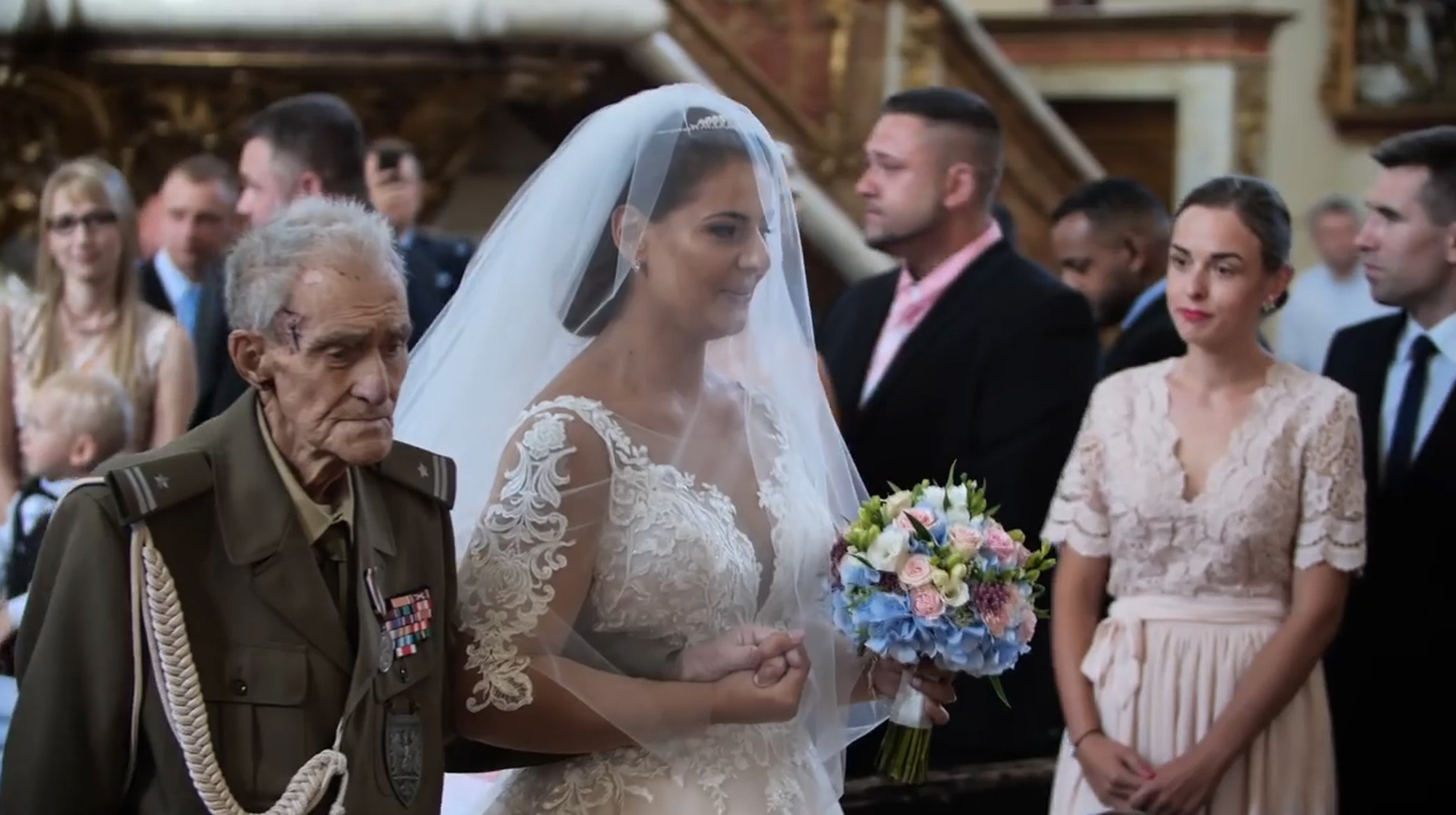 94-year-old grandad Bronislaw ‘Grom’ Karwowski walked his granddaughter Joanna Sema down the aisle and said to his granddaughter that he was proud of her.