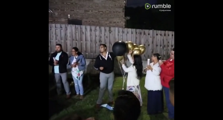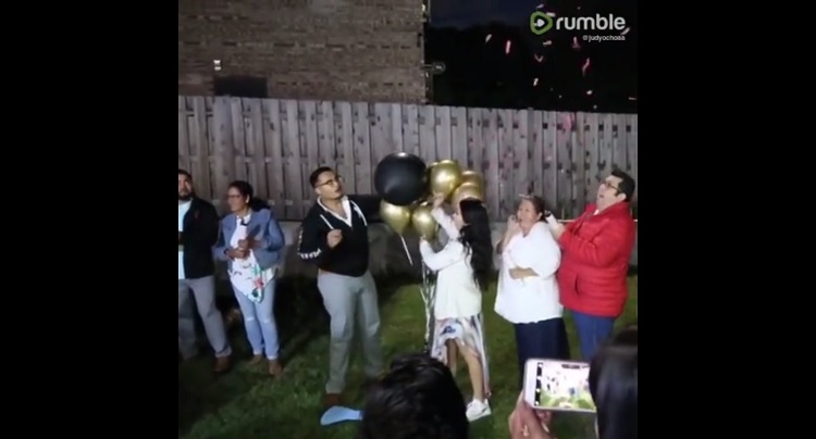 The video shows everyone excitedly watching as the baby’s mother prepared a special black balloon that when popped, will spread a colored powder that will indicate the gender of the baby. However, behind her, the grandma accidentally pulls on her pop canister and out pours pink confetti, revealing the baby to be a girl.