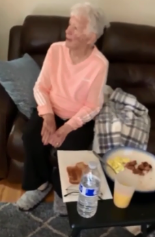 The entire video started with the entry of one of grandma’s children who chose to get this lovely surprise all by oneself. Besides, a dog was also seen to be accompanying that person who too seemed quite inquisitive about befriending his new friend.