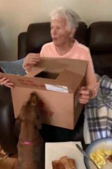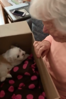 The moment the old lady unpacked the gift box she could not believe the sight she came across. It was nothing but an adorably cute puppy inside it.