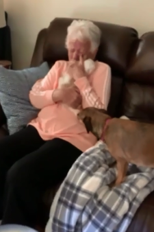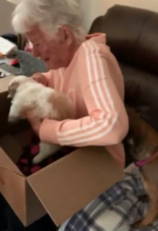 The grandmother’s children, as well as grandchildren, decided to gift her a new puppy as a surprise gift. The little creature was quite oblivious at the same time about what was actually going on.