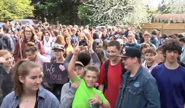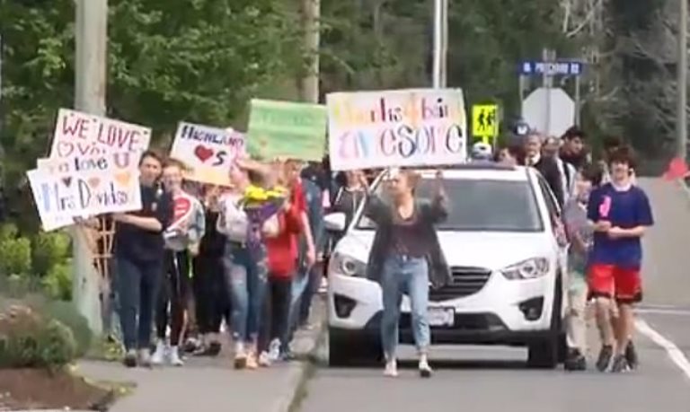 Students were seen with large signs that read: “Thanks 4 being awesome.” Another sign read: “We love you Mrs. Davidson.”