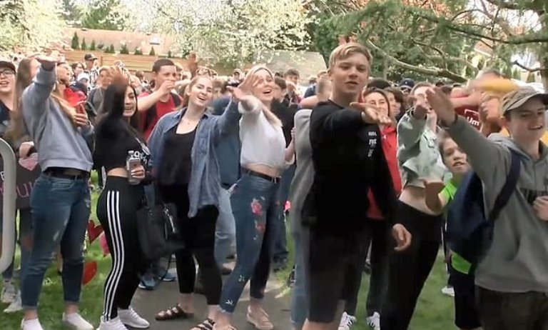 When the students heard that she was moving into an assisted living home, they gathered outside her home to wave their final goodbye.