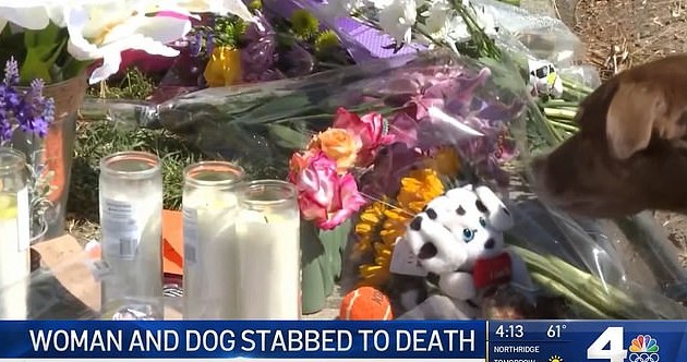 A 66-year-old woman and her beloved white dog were found in a Los Angeles park with multiple stab wounds on Thursday.