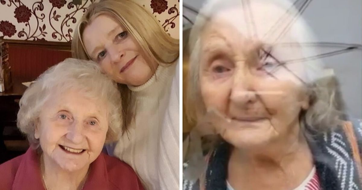In footage taken at a home for the aged located in Bradford, England, 51-year-old Tracy Gothard is seen approaching her 85-year-old mother, Doreen Morris, from behind the window of her room.