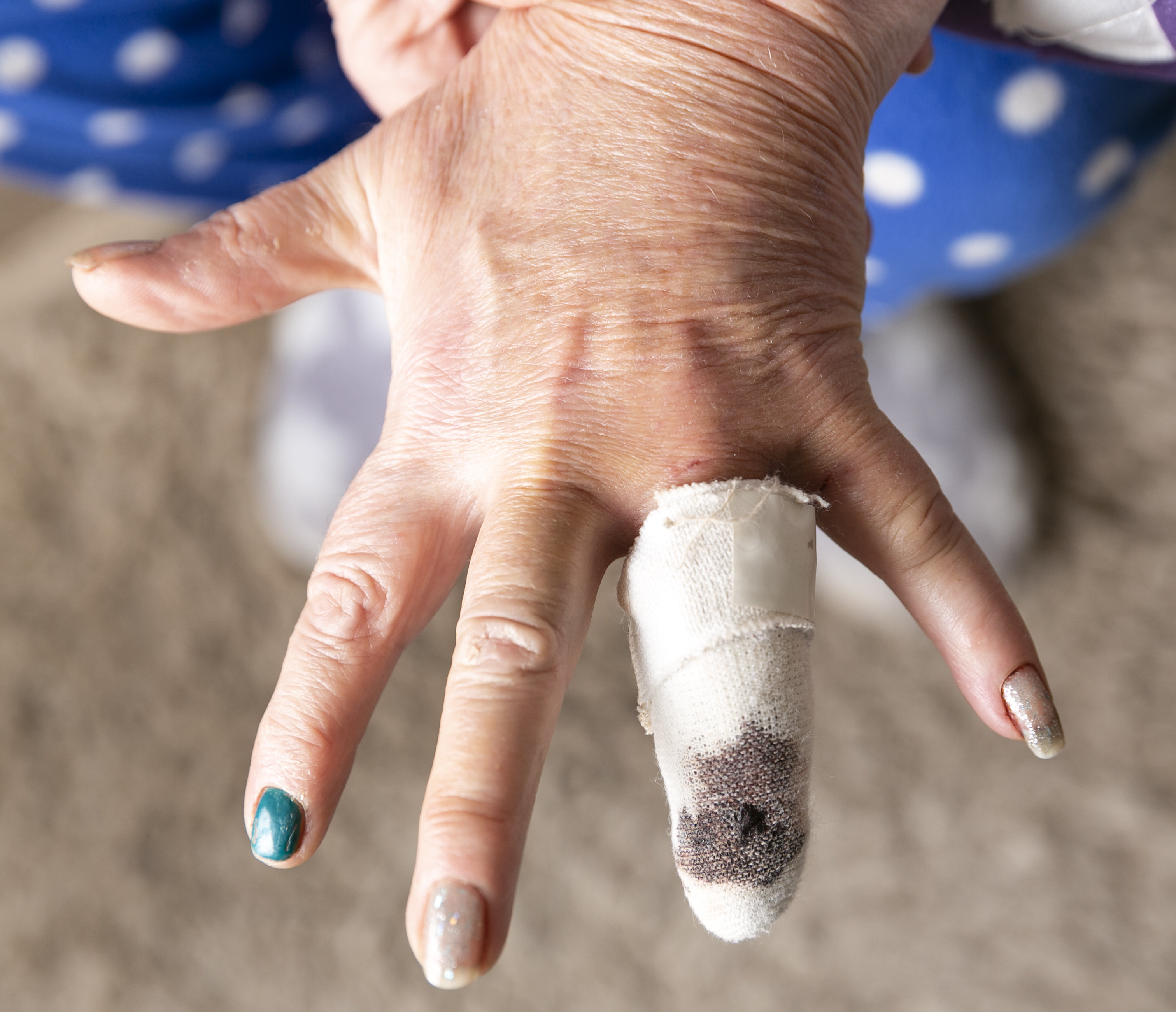 “I had an operation and the doctors said my recovery is going to be a long process. I can’t do a thing and my hand looks disfigured. I can’t even hold a cigarette,” Jill said.