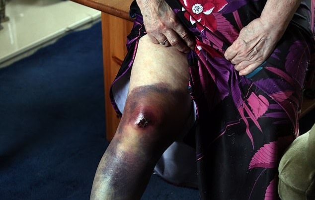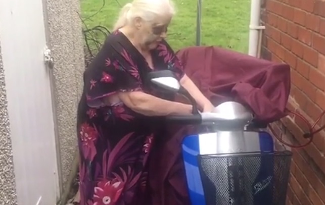 Ida Brown from Dunston, UK, was attacked and pushed into the wall by two thieves who tried to steal her mobility scooter from the back of her home on Sunday morning.