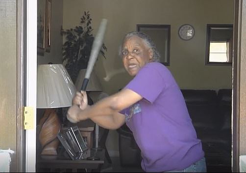“He better be glad I didn’t have a gun,” the pensioner said. “Because I would have shot him. But this is my gun right here,” she added, pointing at her precious baseball bat.
