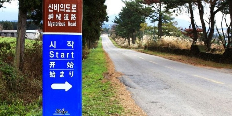 On this lonely stretch of road in Jeju Island, empty bottles or cans left there roll uphill. There is no explanation but local authorities quickly took the opportunity to turn it into a tourist attraction with even a sign to point out where the gravitational anomaly begins.