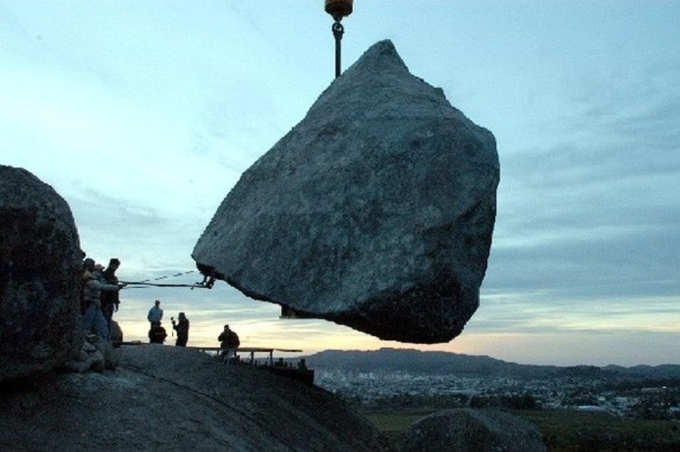 The original 300-ton stone already fell but it took thousands of years for it to do so. Locals even put a bottle at the bottom to check the tilt and it cracked, confirming that the boulder was slowly tilting until it finally fell on February 29, 1912. But 95 years later, a 9-ton copy was placed and affixed to the rock.