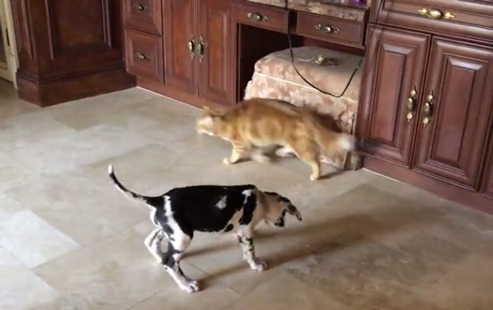 A dog and cat’s friendship is always really special. No matter how much they fight, they always end up playing together. This video is another proof that they can’t stay away from each other.