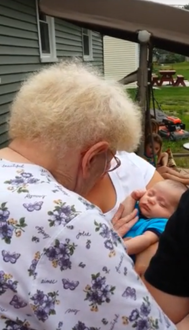 It was such a special moment when grandmother met her great-grandson for the first time after he was born.