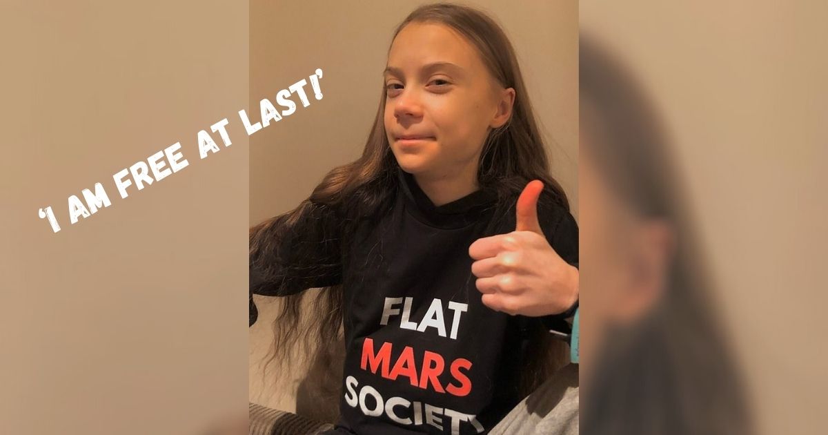For the special occasion, Greta also donned a ‘flat Mars society’ shirt which appears to ridicule flat Earthers and their theory that Earth is flat.