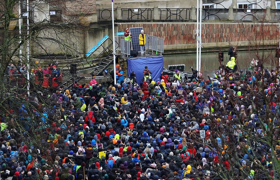 The 17-year-old renowned eco-warrior took to College Green in Bristol to inspire some 20,000 protestors including thousands of school children who skipped classes to attend the rally.