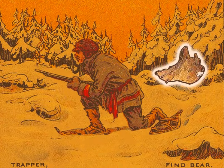 A wild bear is lurking around and the man is trapped! Can you help him find the grizzly beast before it attacks him?