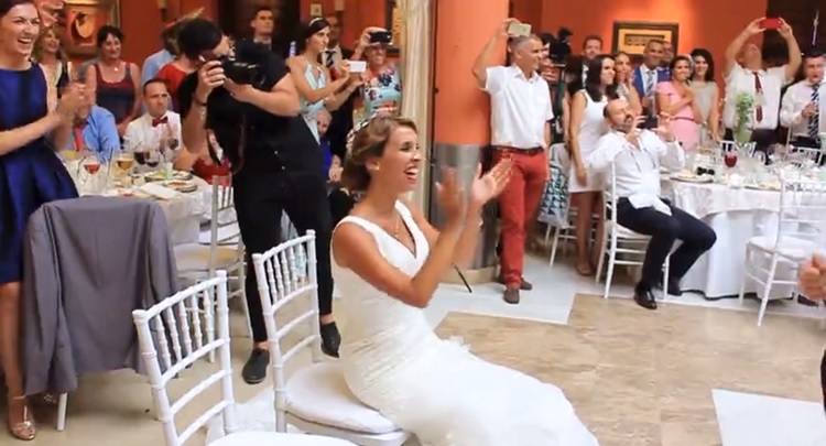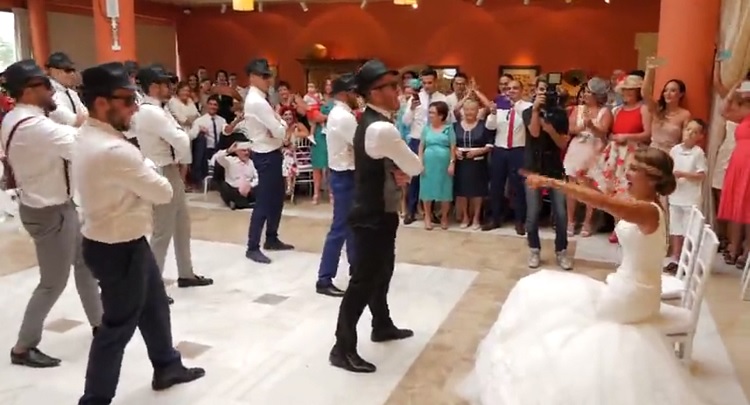 Justin drags Britney along who gamely dances along with them but unaware that something even more spectacular was planned. Finally, the new husband has his wife sit down on the front row seat when on cue, he’s handed shades and a hat and he and his groomsmen start dancing to the tune of Michael Jackson, much to the surprise and delight of Britney.
