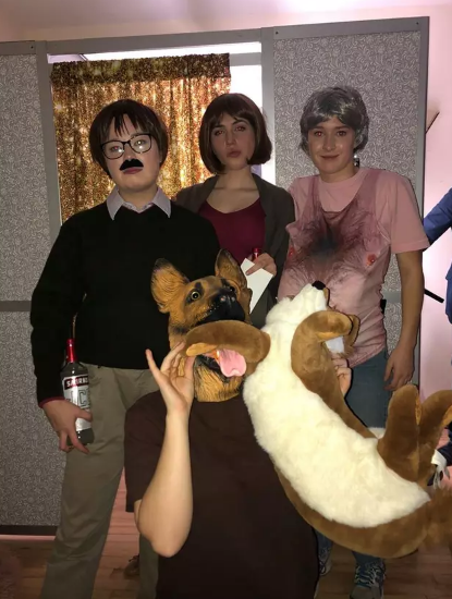 The four girls who love Channel 4’s comedy show Friday Night Dinner had to go to their friend’s 18th birthday party that had the concept of Fancy dress, so the girls got dressed like Jackie, Jim, Wilson, and Martin.