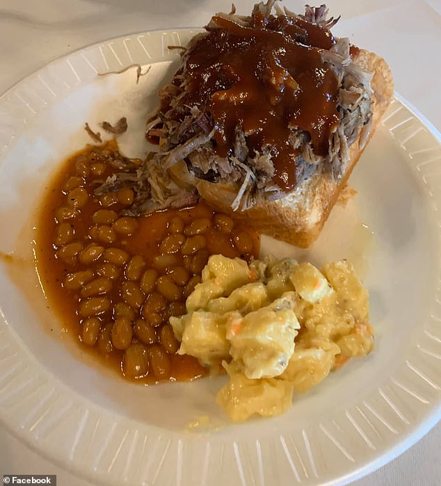 The same incident happened at a wedding when guests were shocked to see baked beans, potato salad and pulled pork on a slice of bread in the food menu.