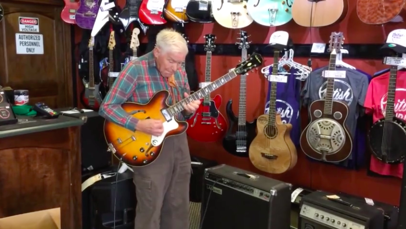 Bob Wood is showing off his amazing guitar skills and attracting a lot of fans. Bob is from Nashville, and while playing the guitar, he made some fans in the local guitar shop.