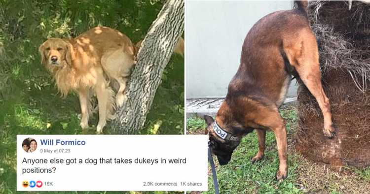 “Anyone else got a dog that takes dukeys in weird positions?” Will Formico asked on Facebook. He then realized that his dog is not the only one pooping with hilarious styles.