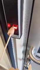 He recorded it on video as he entered the office. Rather than using his own hand, he used the artificial finger on the biometric device to open the door.