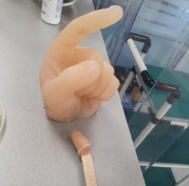 He also shared a picture of his hand he had put in a cast to create the finger.
