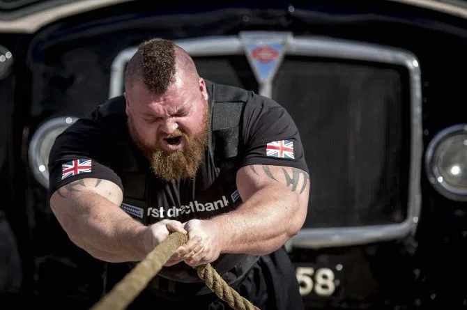 The bodybuilder’s dare followed shortly after he beat the world record in deadlift by lifting 501 kilograms, 1,104.5 pounds. The record was previously held by Hall, the strongest man in England.