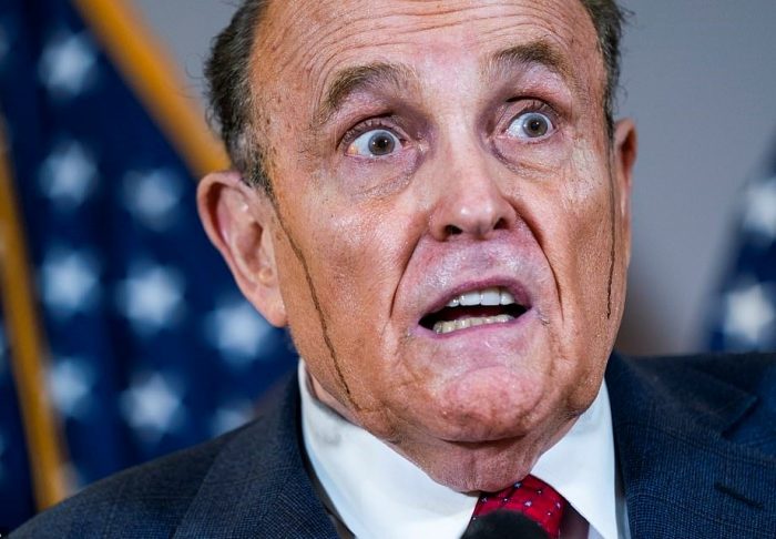 However, things got stickier when two streaks of what seemed to be dark hair dye streamed down Giuliani’s face.