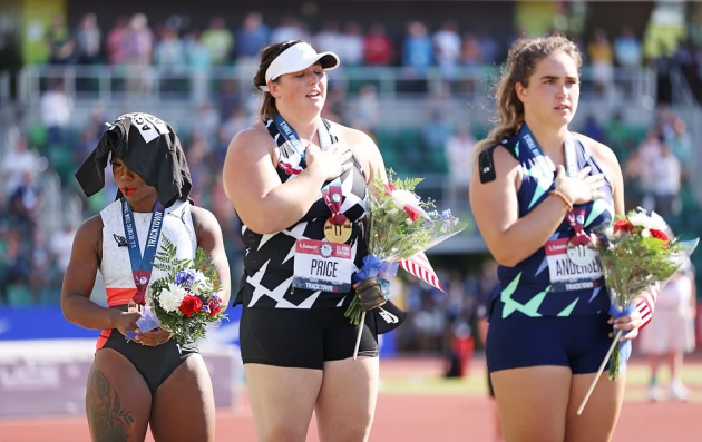 Spokeswoman Susan Hazzard said in a statement: “We didn’t wait until the athletes were on the podium for the hammer throw awards. We’re thrilled with the women’s hammer throw team that selected themselves for the Games.”
