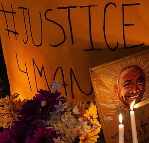 After restraining the man, who was allegedly combative, Ellis was heard saying ‘I can’t breathe’ moments before dying from respiratory arrest caused by the restraint.