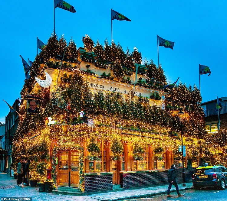 “We have covered every inch of the pub and at this time of the year it does become the centerpiece of the village.”