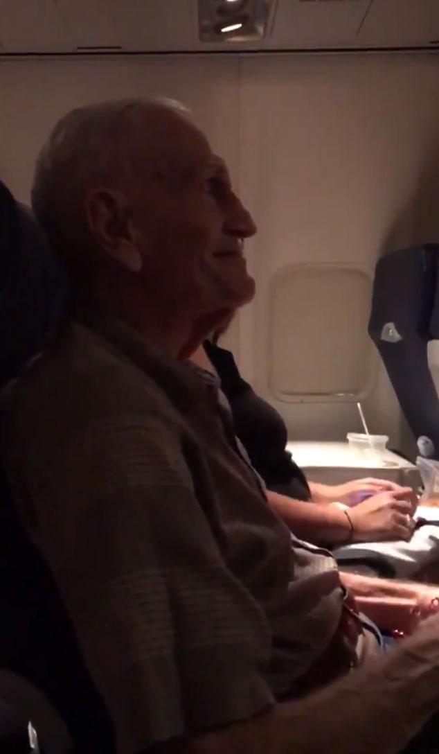 The video shows the crew and passengers paying tribute to the World War II veteran on his 101st birthday during the flight.