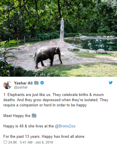He mentioned on his twitter thread about how two sanctuaries in the USA are eager to take in Happy and give her the space to stroll around freely amongst with the other giant creatures of her kind.