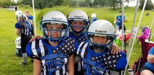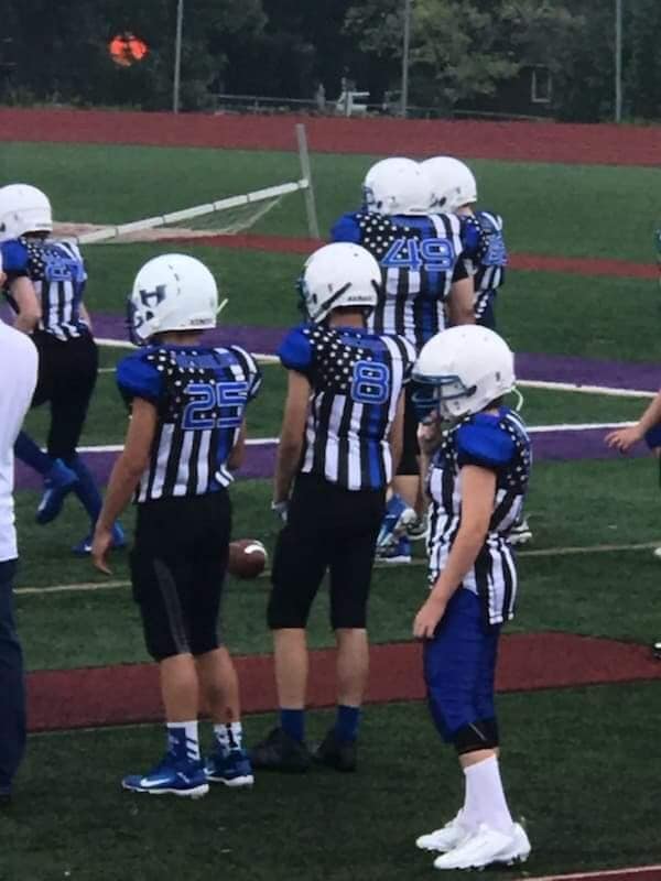 A Harrisonville youth football league in Missouri incorporated the thin blue line into their uniforms this year to show their support to local law enforcement officers.