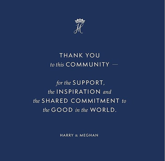 Meghan and Harry shared a final post from their Instagram account, thanking their fans for their support.