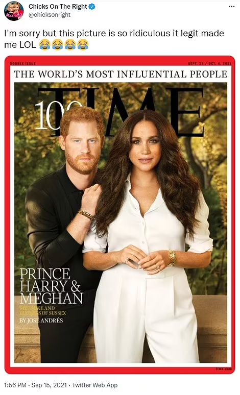 Social media users have taken a jab at Meghan and Harry’s photos for TIME after the couple made it on the magazine’s prestigious list.