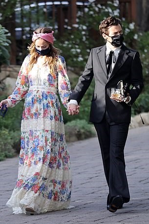 Olivia Wilde and Harry Styles walked hand-in-hand as they arrived at his agent’s wedding in Montecito, California.