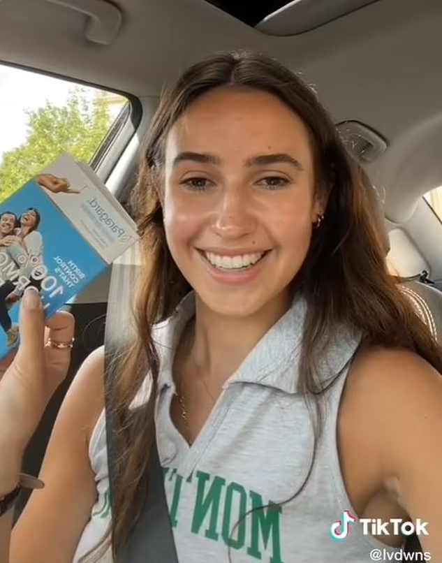 Olivia then showed the brochure to the camera. “It has the same efficacy rate,” her gynecologist said. “We put it in your universe and you bleed and cramp for three months.”