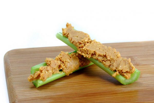 Mix one-quarter cup of shredded zucchini, one-quarter teaspoon fresh grated ginger, one eighth teaspoon ground cinnamon, and a teaspoon of pure maple syrup into two tablespoons of almond butter. After filling four fresh celery stalks with the mixture, enjoy the snack.
