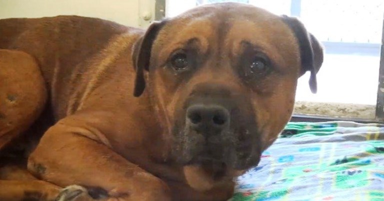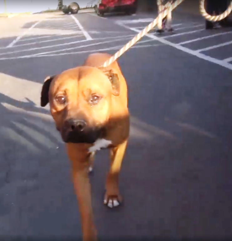 It is unclear why the family chose to leave him there, but the traumatized Labrador Retriever and pit bull mix appeared deeply affected by what happened.