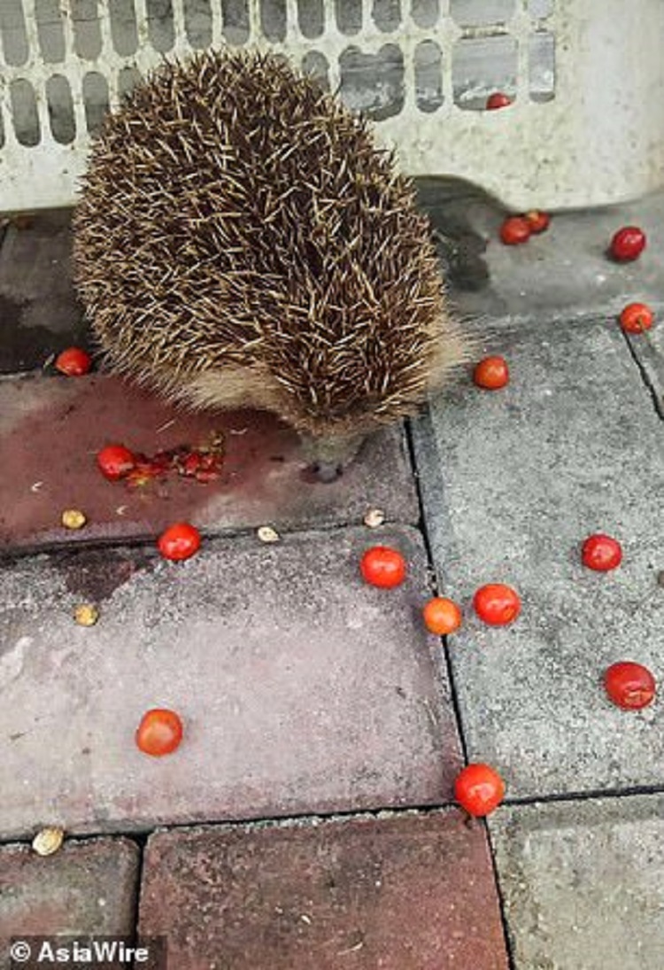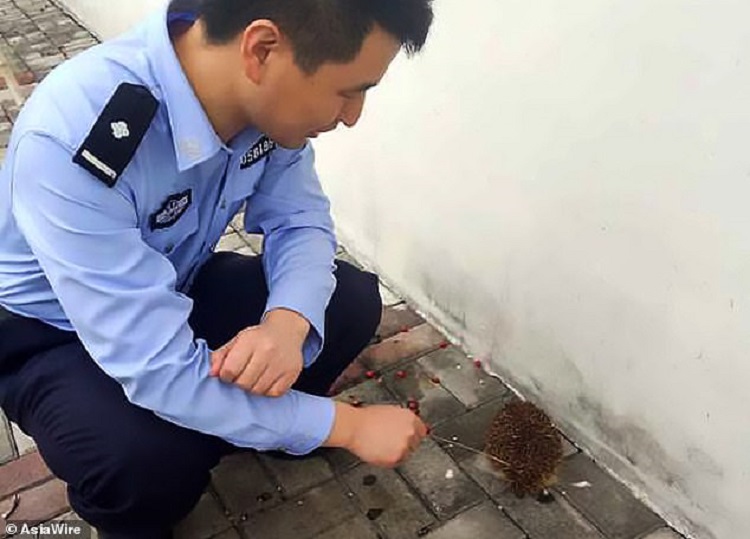 An officer named Lin Yang told BJ News that he and his colleagues saw the hedgehog feasting on the fruit and found the scene “so cute.”