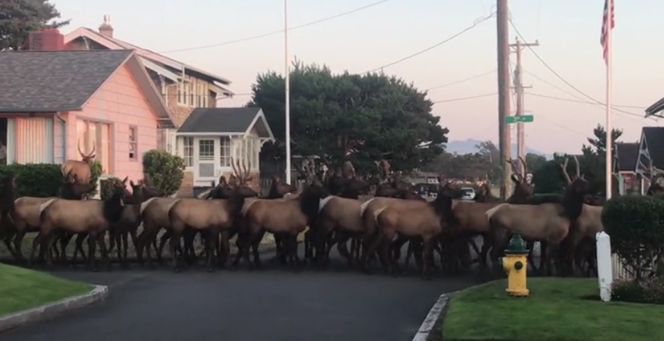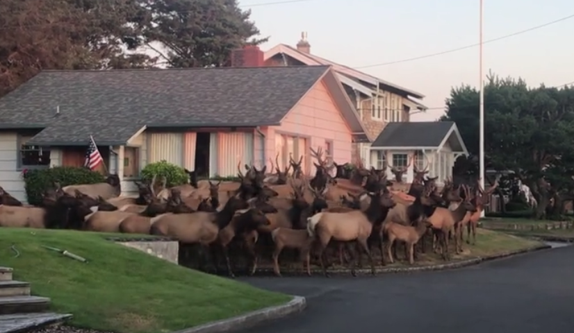 Recently, a woman captured a herd of Elks gathering outside the neighbor’s house in Oregon this summer.
