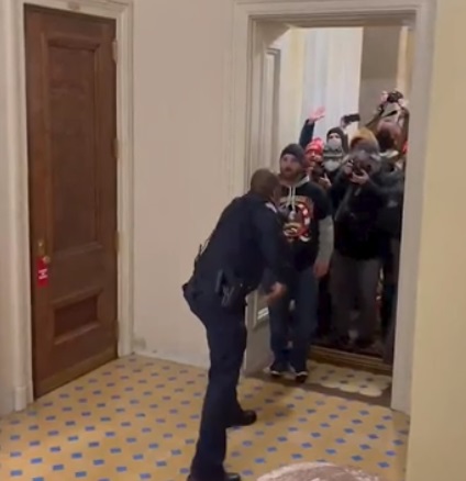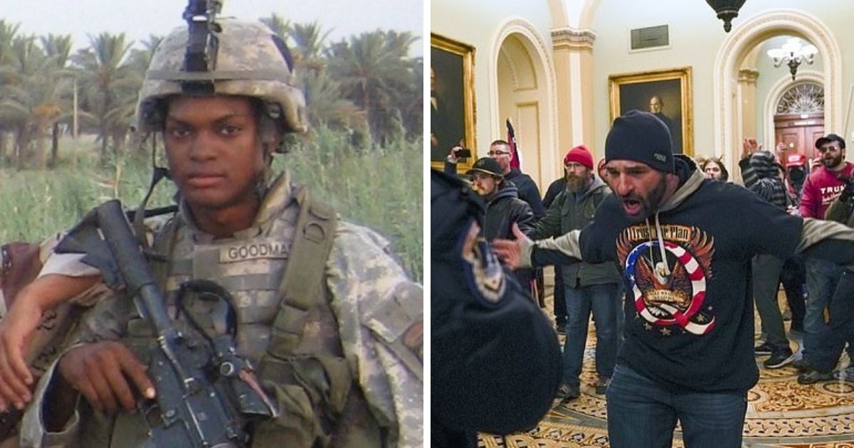 During the Wednesday riot, Goodman put his life at risk as he confronted a group of rioters and lured them away from the Senate in order to give the people inside enough time to escape.