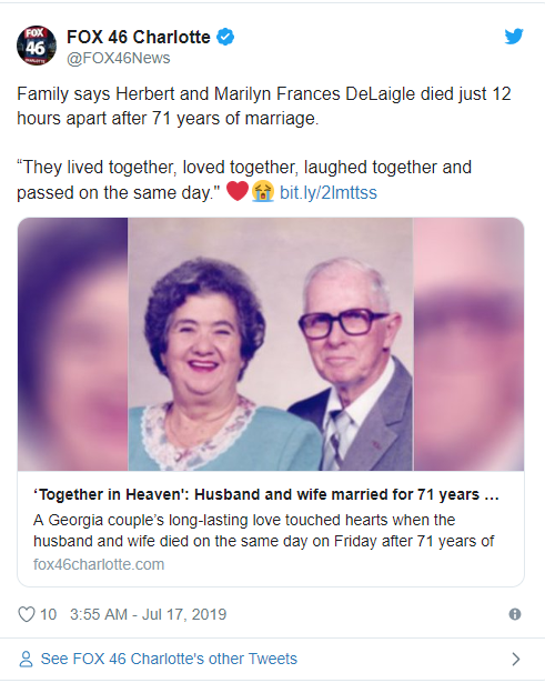 The only way their marriage could survive all these years was because of their love, support, humor, and always being there for each other. It is heartwarming to see that the couple spent 71 loving years on earth and went together.