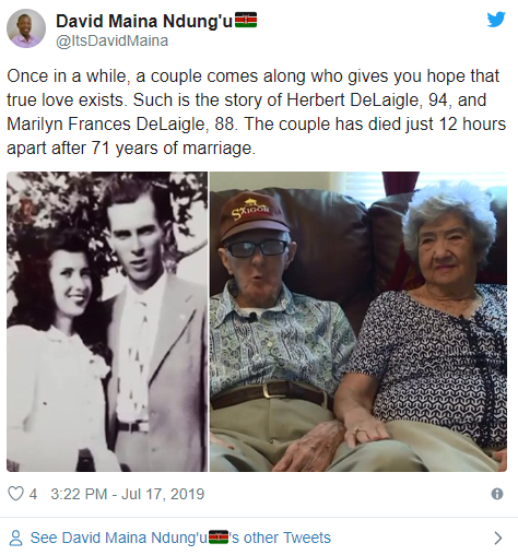 Recently US veteran Herbert Delaigle and his wife Frances passed away on the same day just hours away.
