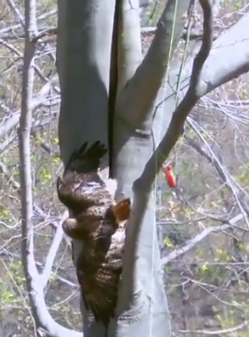 There is a place called ‘Hope,’ which is a rehabilitation center for the birds who help the birds who get hurt or get trapped. The center got a call about a red-tailed hawk being caught in a tree for the last 16 hours.