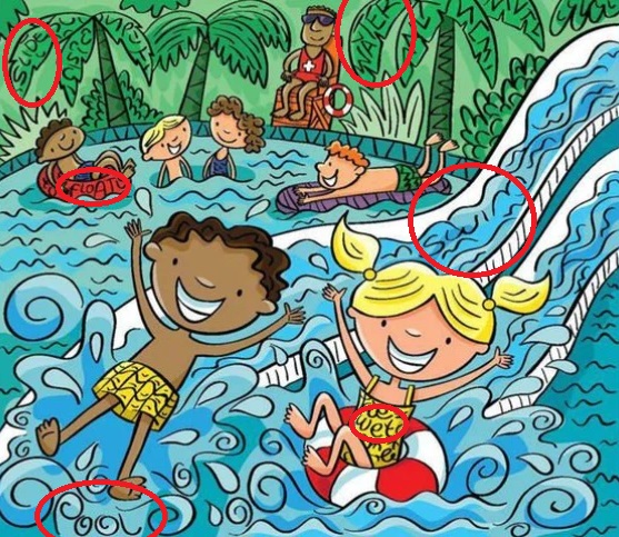 A tricky ‘spot the hidden words’ puzzle featuring a water park is making people scratch their heads.