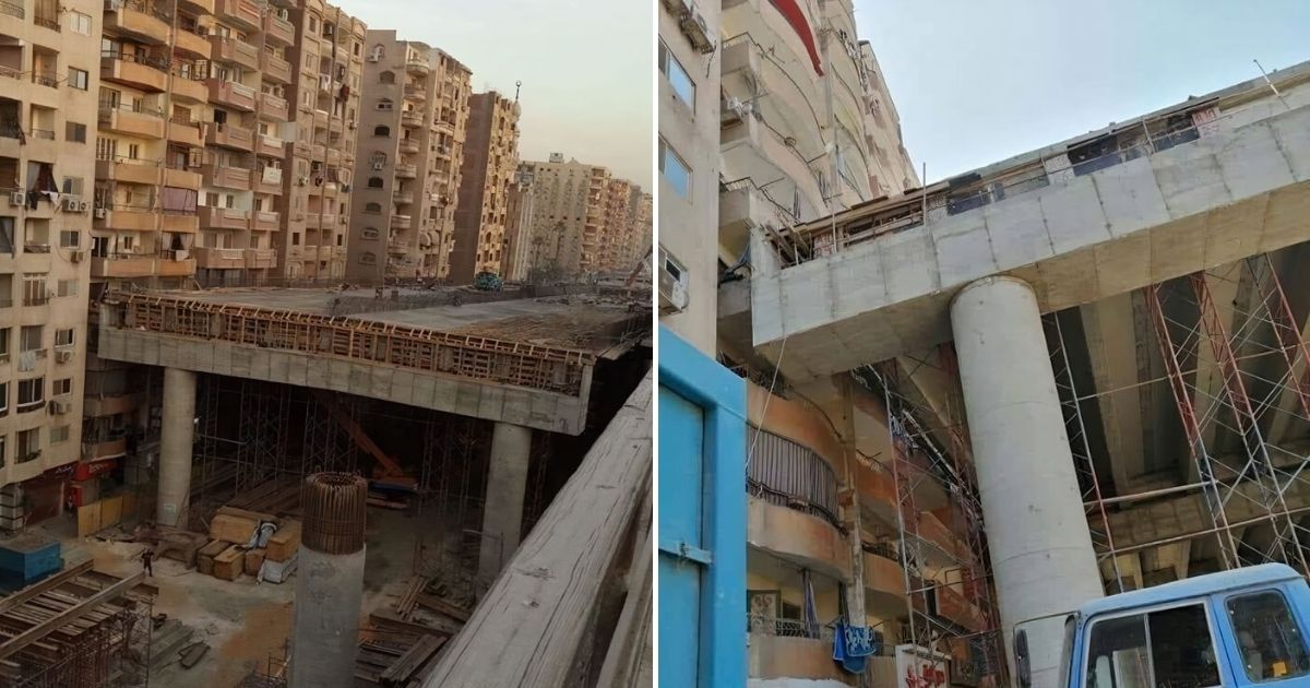 In the pictures of the land development project that is taking place in Cairo, Egypt, it is clear that the new highway bridge is just inches away from several residential buildings.