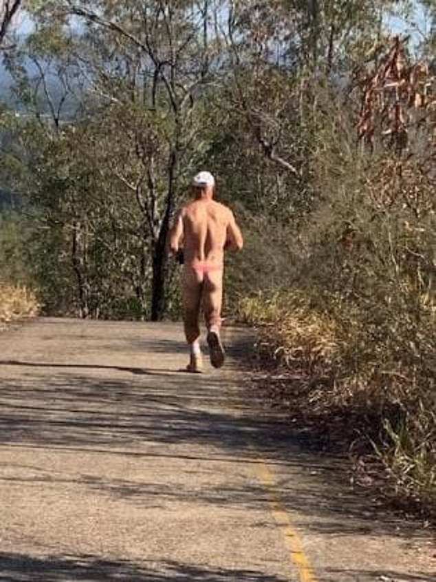 A group of women spotted a man wearing nothing but work boots and pink G-string hiking on a popular trailing track.