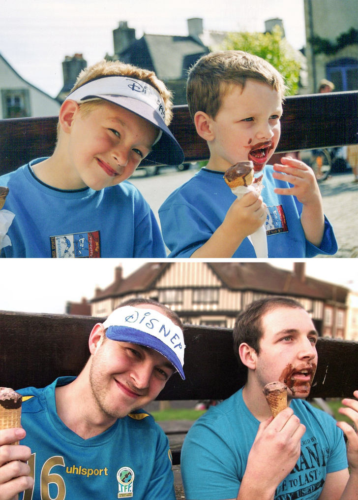 That time is behind us but that special moment will be always remembered. Recreating photos from the past allows us to come back and feel that moment once again and have a good laugh about it.